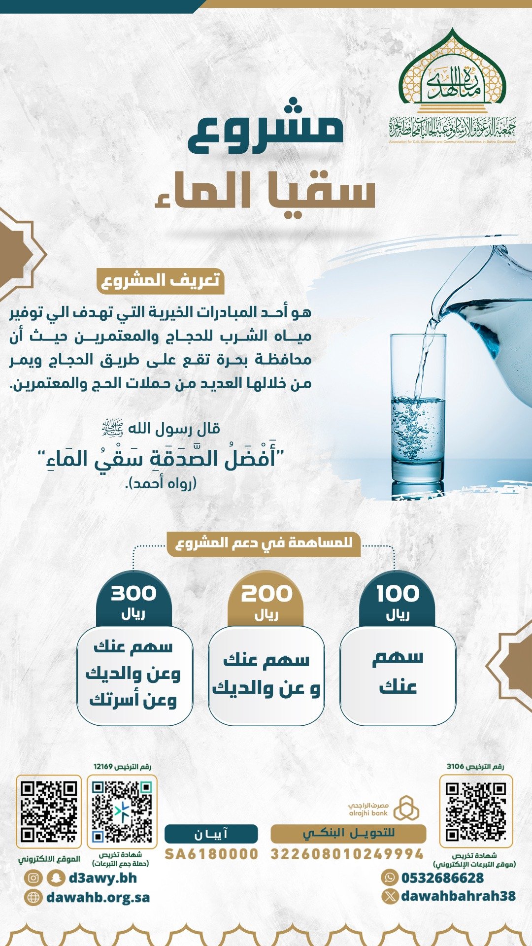 جمعية الدعوة والإرشاد وتوعية الجاليات بمحافظة بحرة تحت اشراف وزارة الموارد البشرية والتنمية الاجتماعية ترخيص رقم ( 3549 )